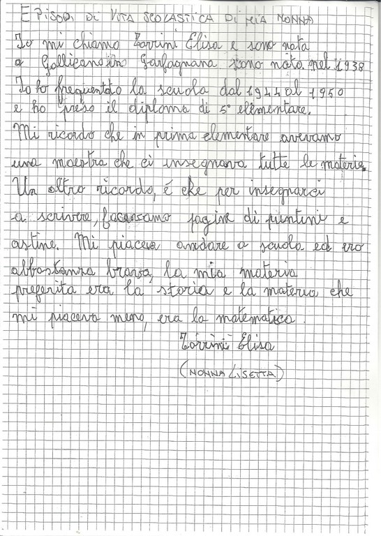 Il 25 maggio 2016 i bambini della classe II della Scuola Primaria "U. Cipolli" di San Casciano (PI) hanno organizzato un incontro per condividere alcune storie e ricordi scritti dai propri nonni relative alla loro infanzia scolastica.